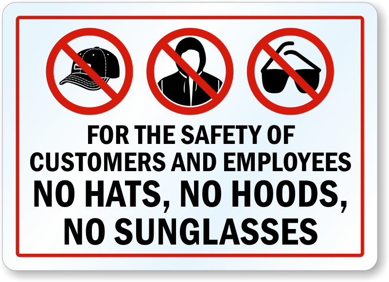 Bottom line, we have all seen the signs that say “No shirt, no shoes, no service”. Is “No hoodies, caps, masks” any different?