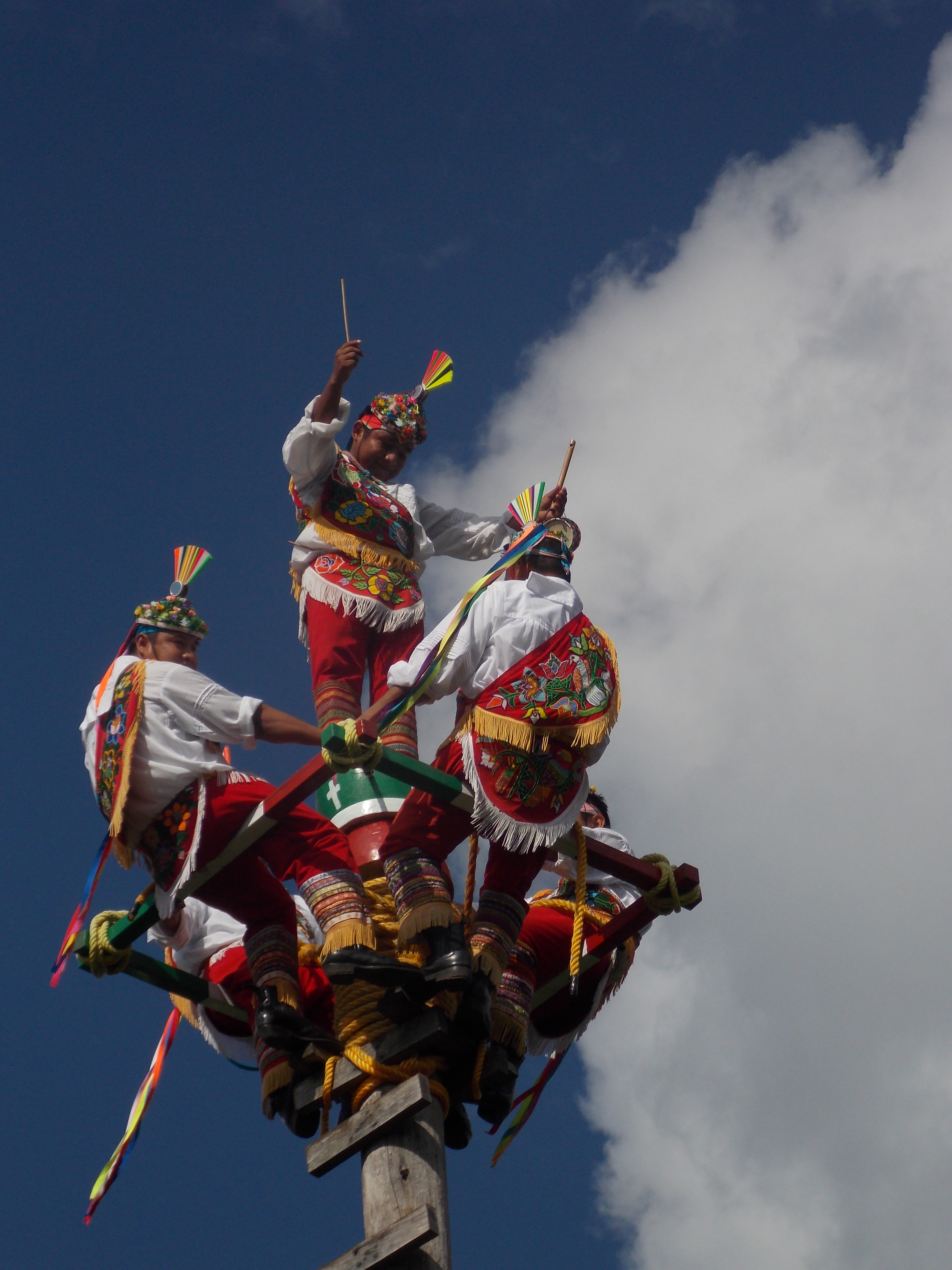 There were several vendors selling a variety of traditional gifts from jewelry to art works. We were then escorted to a show by the Papantla Flyers who performed the ancient voladores ritual. This was absolutely breath taking as five men climbed a high tower and proceeded to spin while one stood and played a flute and small drum. We were all holding our breaths as the performers descended head first at the end of ropes to the ground.