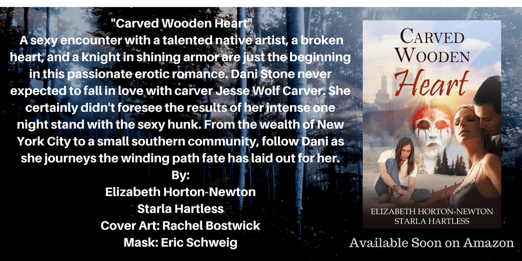 “Carved Wooden Heart” is my new release written with first time author Starla Hartless. Sharing a love of indigenous peoples art we put our heads together to bring you a sexy love story set against the contrasting backdrops of big city New York and small town Sweetwater, Tennessee. Growing up in New York City before moving to Knoxville, Tennessee I had a pretty good feel for the differences in the cultures of the two cities. However Starla had a deeper grasp of the powerful sense of community in a small town like Sweetwater. Between us we created Dani Stone, a sweet southern girl who broke rules and aimed high. Neither innocent nor slutty, she is like many young women today; her head focused more on having a career than finding Mr. Right. Watching her evolve and seeing her character mature throughout the story was exciting and sometimes surprising even for me. I hope this book will excite and surprise you as well.
