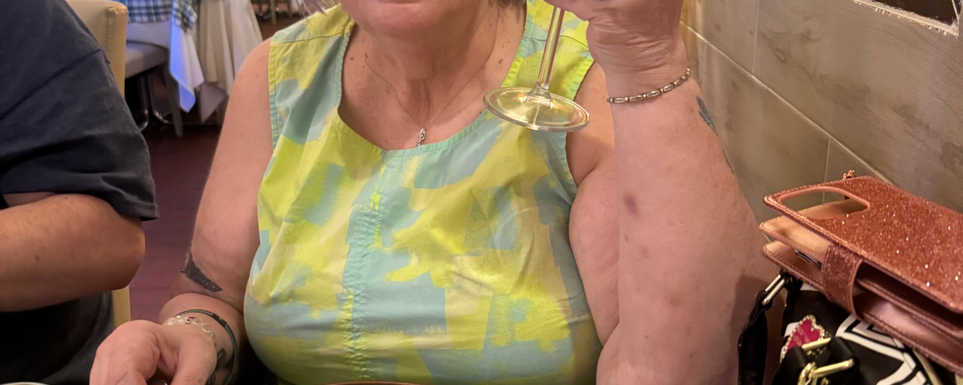 Despite this unsettling turn of events, we asked where we might go to dinner nearby. One thing it’s important to know about Venice is it’s a city built on canals. Small bridges over these canals involve going up and down steps. Luckily I am able to walk well enough to conquer these obstacles. On our first night we avoided crossing any canals by going to a delightful nearby restaurant.