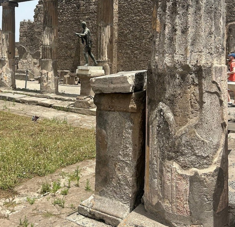 Our first stop was the Temple of Venus. It’s surrounded by tall columns. Her Temple was the city’s largest site of worship. There are small buildings on one side that are believed to have been workshops. Some buildings that were present before the Temple was built were kept as homes for Temple priests. Venus was the goddess of love and beauty. She was the city’s official guardian.