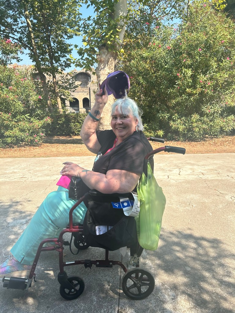 Our first port on this 11-day cruise was Naples. Our goal was to tour Pompeii, something we had previously passed on. This was an ambitious idea. I use a wheelchair and my husband is 65 years old, and my sister is 72 years old. The temperature was in the high 90s and the sun was blinding. But, we were determined.